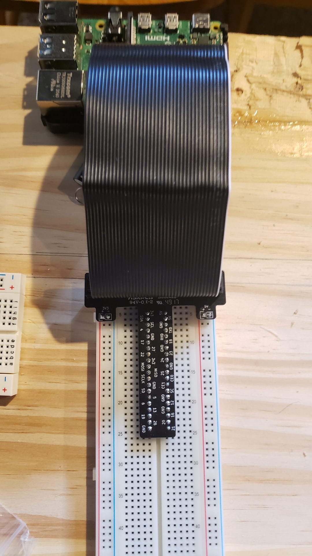 This is the Raspberry Pi T-Cobbler Pro. This one I bought at Micro Center. My only issue with the Raspberry Pi is none of the pins are labelled. This device helps with labelng the pins but gives you a handy 3.3V and 5V power rail. Left side you see 3.3V power and ground and the right side 5V power and ground. Most recommend not to use the 5V rail because it is not a true 5V rail like the Arduino. I am still trying to find a Fritzling version of my T-Cobbler Pro component.