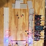 I was able to find a few SN74HC595N shift registers to connect the lighting up with. This saves on wire and ports of the controllers. I added 8 position dip switches and SIPO and PISO shift registers to this project.
