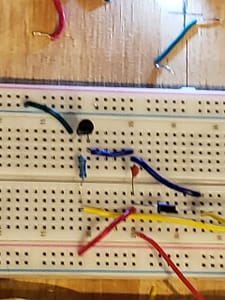 I smoked 3 x 2222A transistors building them project. You need to pay attention to the direction of the 2222A and diode. The diode has a silver ring on one side for is the cathode (+) end. Make sure you don’t have power coming from the Arduino to this breadboard. Make sure you have the common ground on this breadboard.