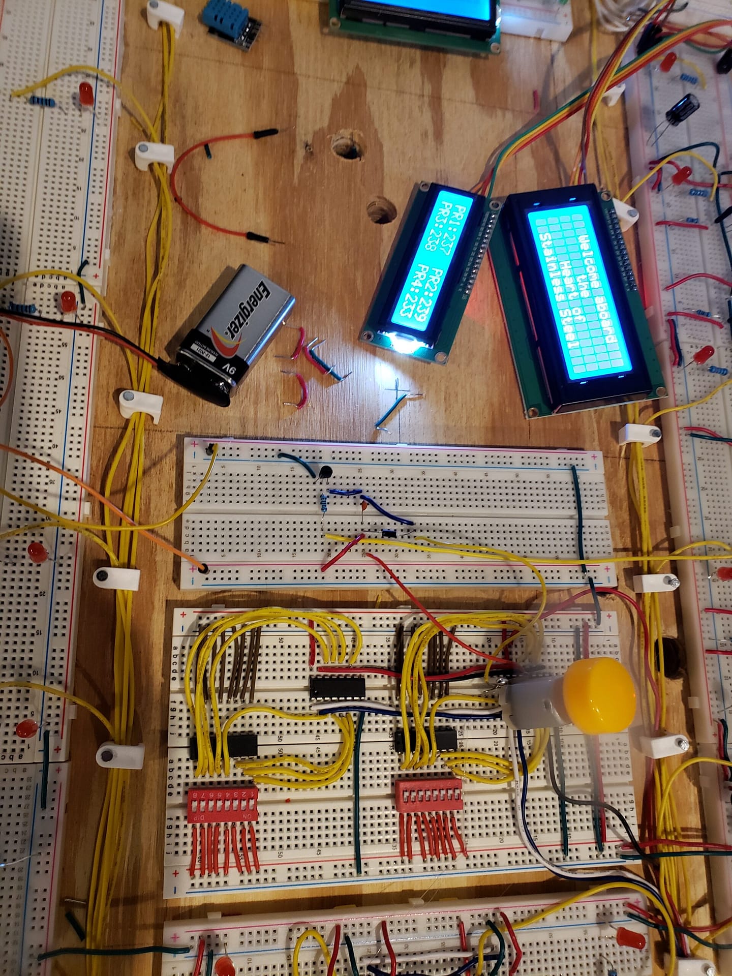 // Connect to LCD via I2C, default address 0x27 (A0-A2 not jumpered)