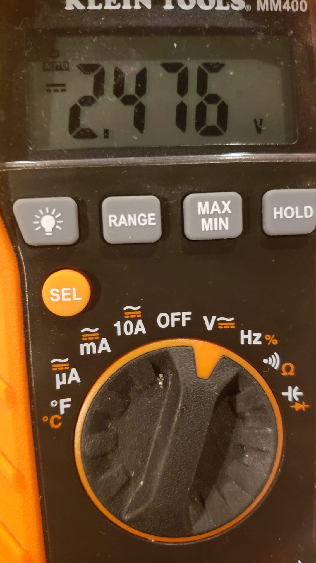 The 4.97V voltage divider of two 1kΩ resistors would be 2.485V