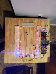 Day 5 trapped in my broken spaceship. I managed to cascade two SN74HC595 SIPO modules together to get 16 lights working front to back. The I2C computer is functioning.