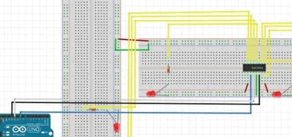 SN74HC595 is a great way to extending your Arduino devices. This is SIPO: Serial In Parallel Out. What does that mean? You can connect 3 wires back to your Arduino device and get 8 outputs. You can even daisy chain them together to expand from 8 to 16, 24, 32 outputs. The benefit of shift registers is you can expand your devices to more input and output ports. I will be discussing SN74HC165 PISO Parallel In Serial Out chip for dip switches to control the 8 LEDs.