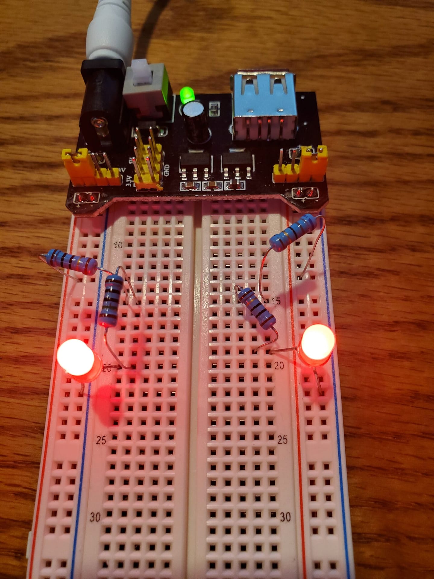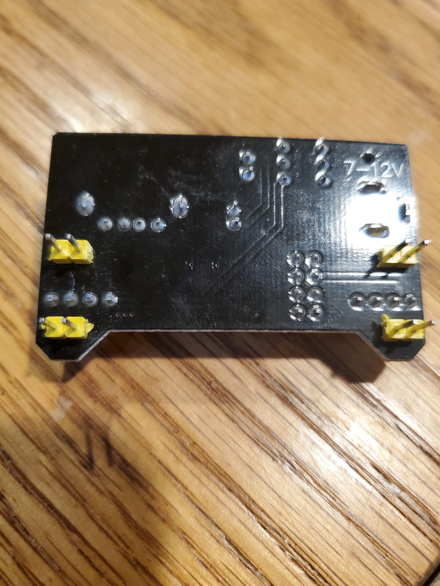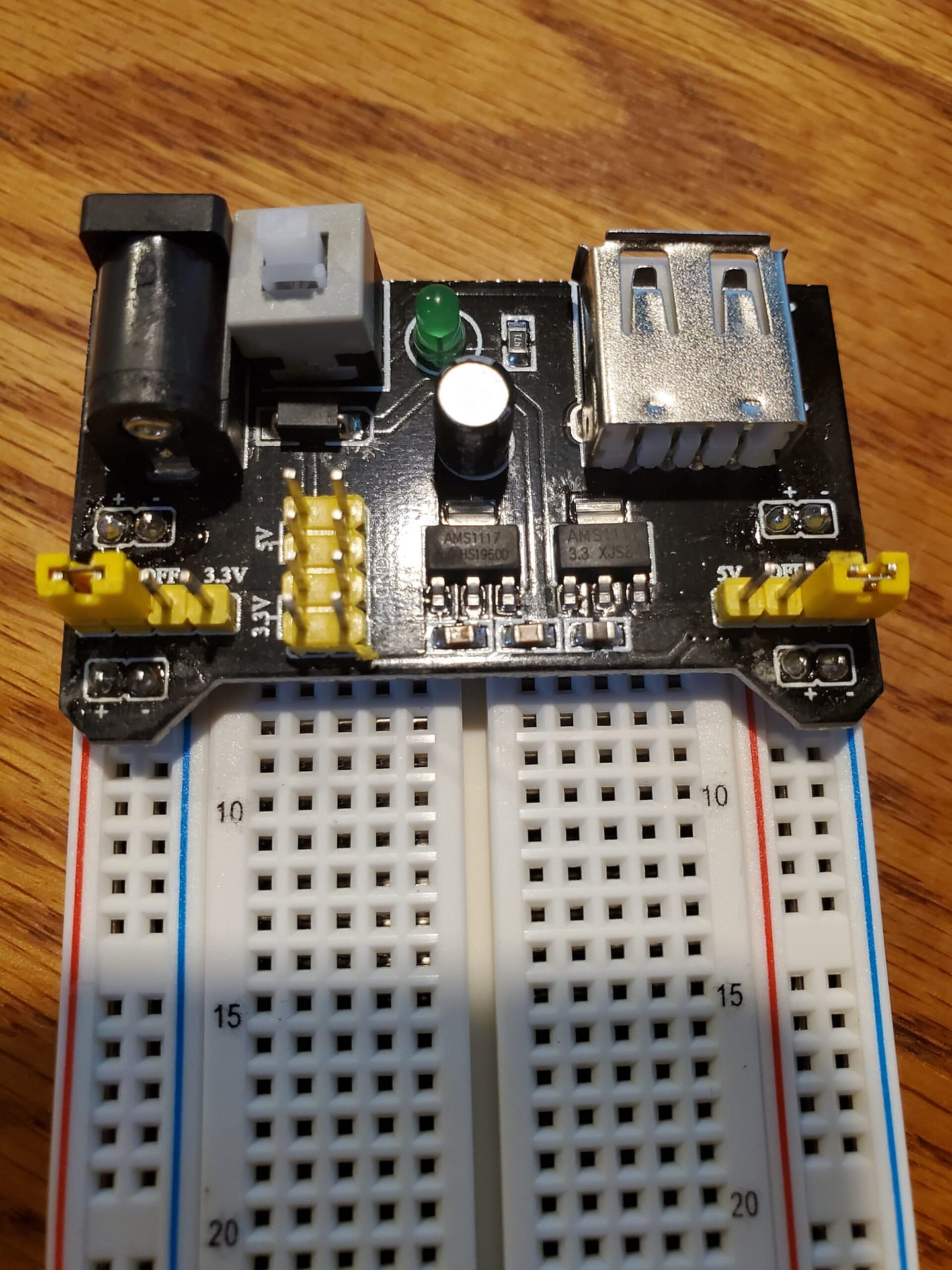 Instead of powering the breadboard from an Arduino or Raspberry Pi. I am using a breadboard power supply module. It is 7-12V capable. I am going to use the 9V power supply that power an Ardiuno.