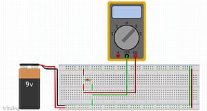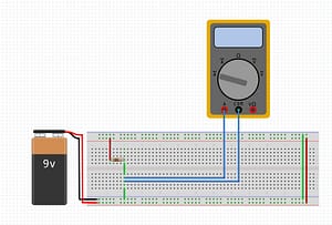 Since the internal resistance of a multimeter is high you can measure the voltage directly from a battery without a load present. Make sure you have your multimeter set to DC Voltage. You can remove the resistor and measure directly from the battery with the meter in DC Voltage mode.