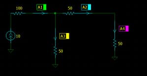 So now A2 and A4 are in series so the resistors add together to 100Ω