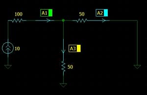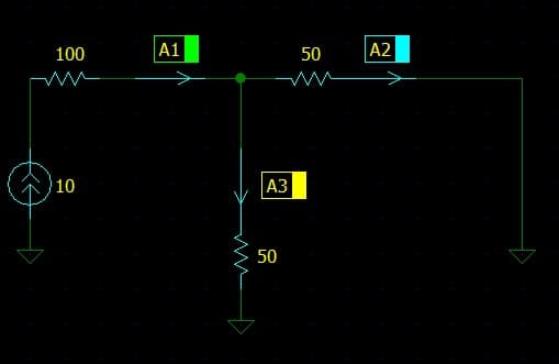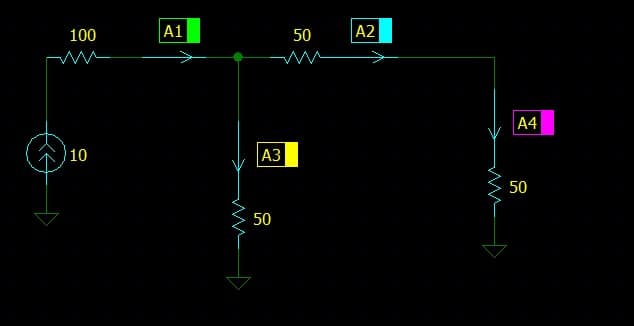 “>∑iin=∑iout: sum of current going into a node = sum of current going out of the same node