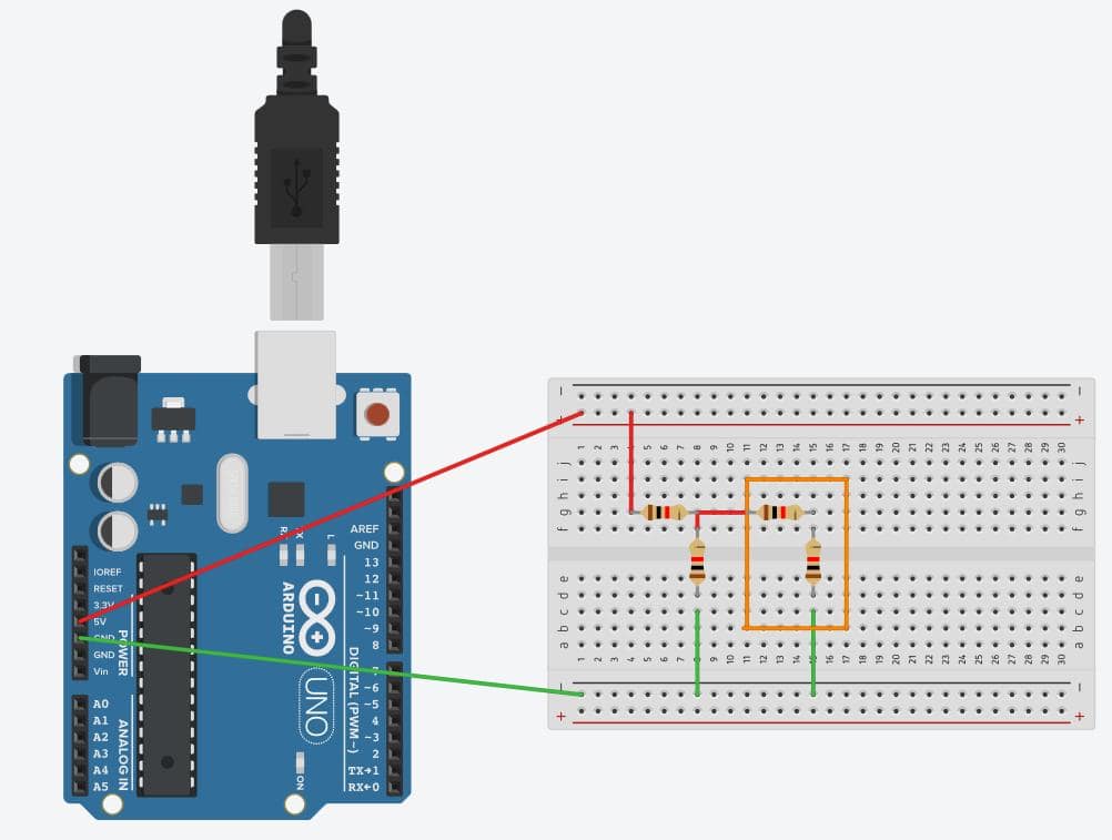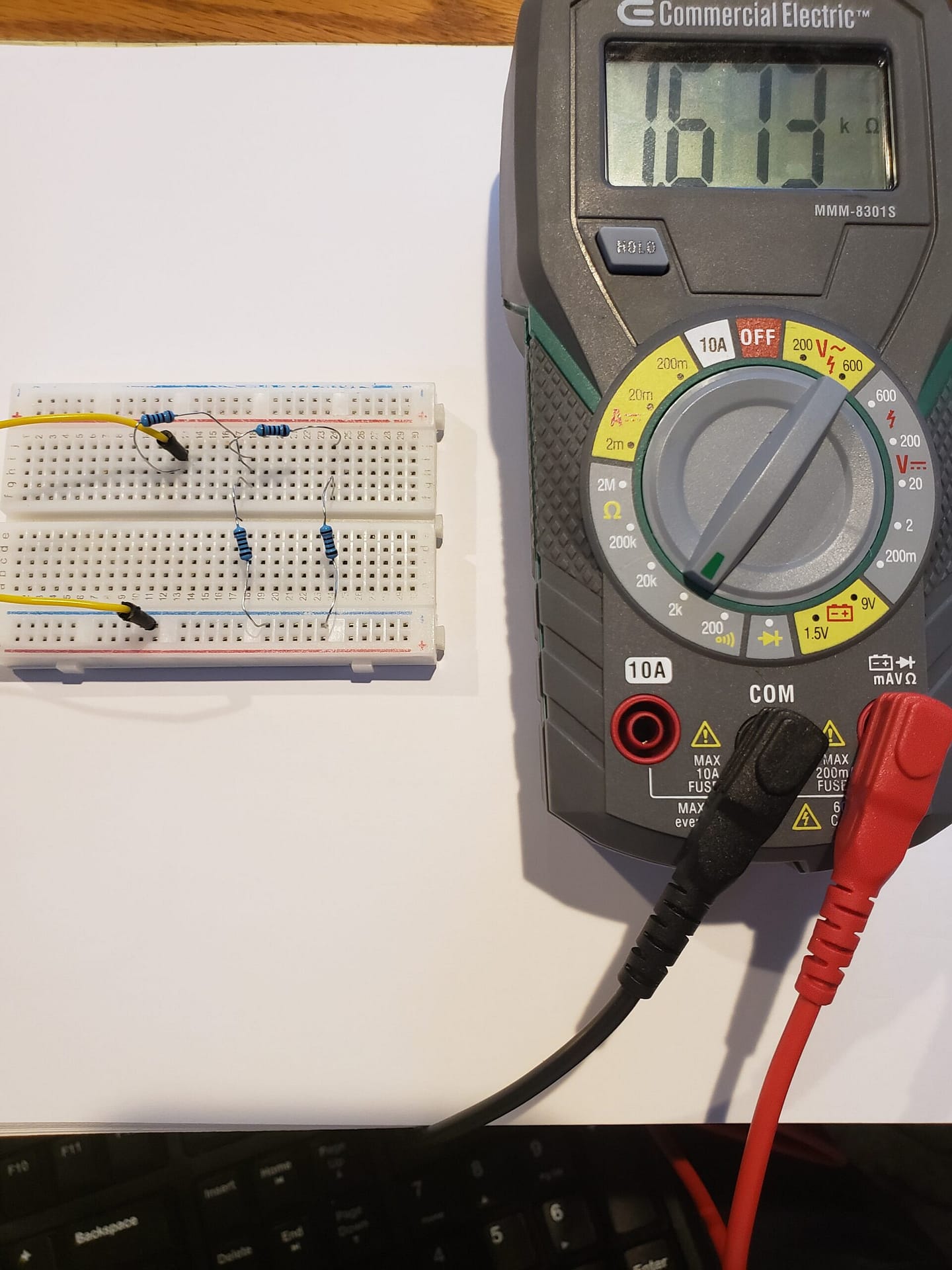 We start furthest from the power inputs. The orange box has the first two. They are in series. So we add them