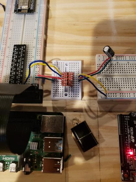 It marks all the ports that are not listed on the Raspberry Pi. One side has 3.3V + ground and the other side 5V + ground. Below are two pictures. The T-Cobbler Pro and the T-Cobbler connected to the Bi-Directional Logic Level Converter.