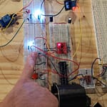 9V battery – 1.5V Red LED = 7.5V needs to be dissipated to save the Red LED. Red LED is known to be 1.5V @ 20mA. So 7.5V / 0.020A = 375 Ω for the minimum resistance. You have seen this on other projects of mine that I use a 470 Ω resistor for a Red LED on a 9V battery. Red button is for Red LEDs. White button is for White LEDs. pd = Pull Down and pu = Pull Up. Full code at bottom.
